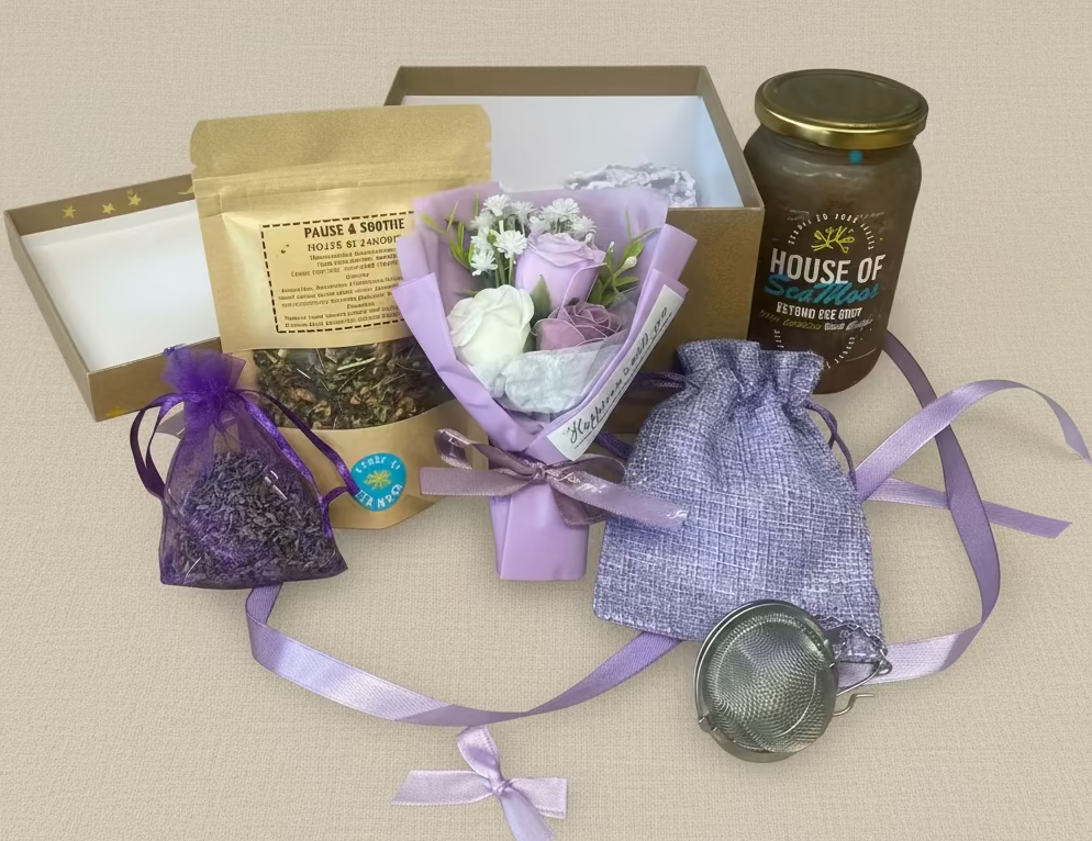 Celebrate Mother’s Day with a heartfelt, health boosting gift that nurtures from the inside out. This all in one wellness bundle is thoughtfully curated to honour the love, care and strength of every mother figure. It includes 380ml of nutrient dense Sea Moss Gel, a revitalising Herb Pack of your choice, Purple Bouquet of flowers made with paper, arts and crafts, Stainless steel herbal tea infuser ball, a purple versatile drawstring bag, Lavender filled bag which is great for insect & moth repellent, for clothes, drawers, wardrobes, shoes, travel, to have under your pillow for a better night sleep, calmness before exams & a natural car scent.